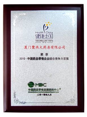 由中國藥品零售發(fā)展研究中心(MDC)、中國醫(yī)藥企業(yè)合作與發(fā)展組織(CPEO)、中國藥品品牌評(píng)審委員會(huì)主辦的“健康中國?2010中國藥品品牌評(píng)選活動(dòng)”,經(jīng)過為期半年的品牌征集、品牌入圍和專家評(píng)選階段,于6月21日公布了“健康中國?2010中國藥品品牌榜”榜單,鷺燕大藥房榮登“健康中國?2010?中國藥品零售企業(yè)綜合競爭力百強(qiáng)”企業(yè)。 |